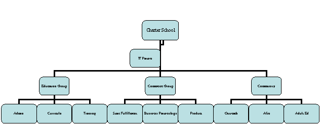 This paper explored the organizational structure, reporting structure, communications plan, and attributes of the project team for the development of a charter school. Each of these areas will be further defined as the project team is assembled. For now, the group efforts for this class will have to suffice in the preparation of the strategic project plan. Areas of focus have been determined and responsibilities assigned for the purpose of this project. Timeline adjustments, critical path assessments, team development needs, and a more detailed WBS are forthcoming.
